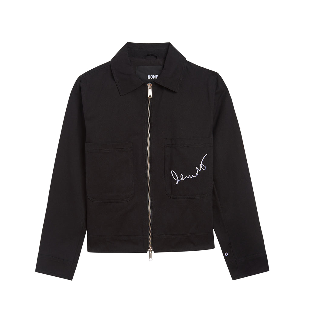 This mechanic's jacket features a bold print of Basquiat's artwork Beat Bop on the back of the jacket. On the front, you will find Basquiat's own signature embroidered at the front pocket and the RPO logo above the cuff on the in white thread on the left side.