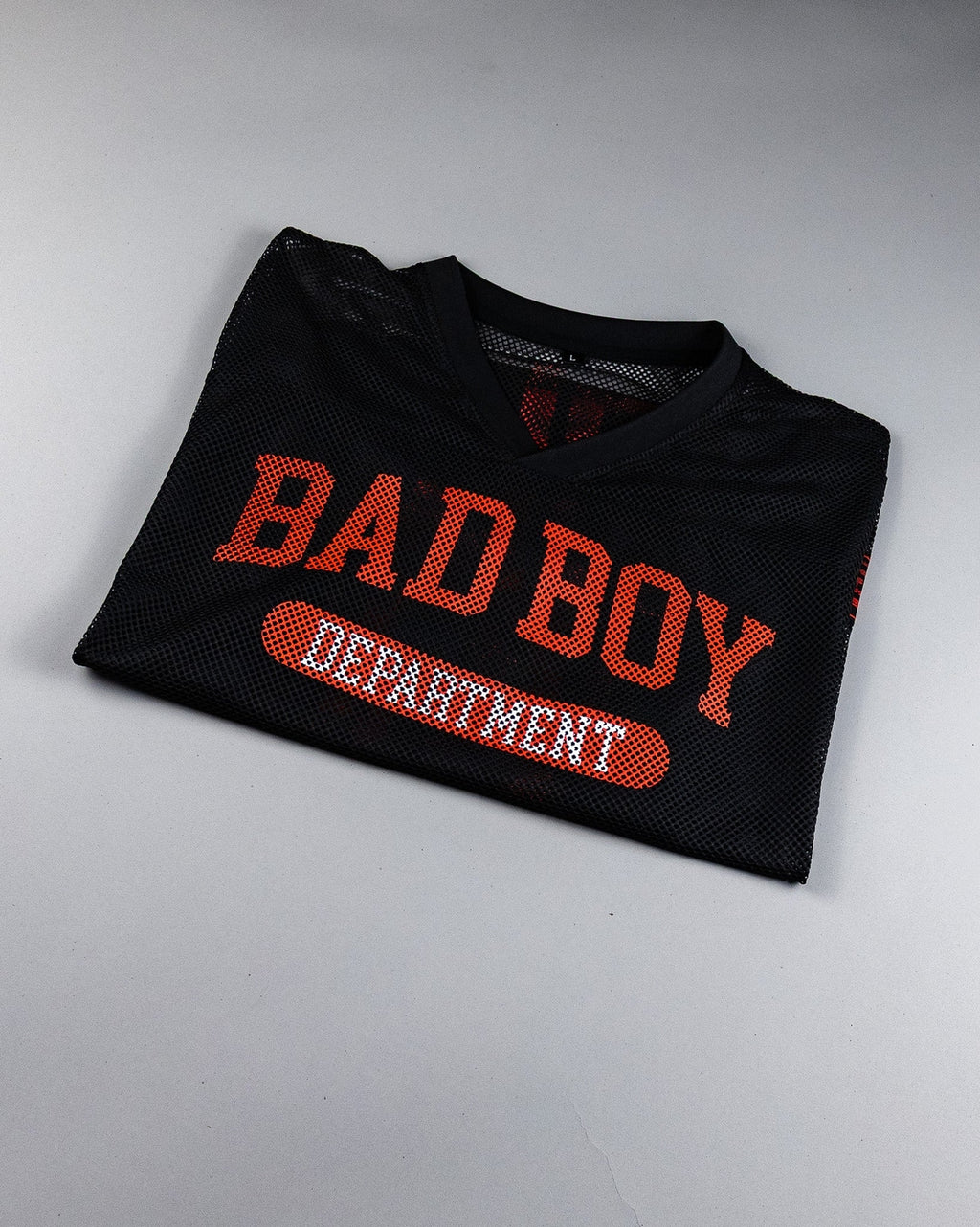 “BAD BOY” across the chest with “DEPARTMENT” underneath, because you don’t need permission to be the problem.