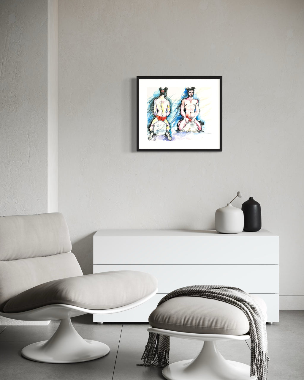 Jason Duffy has been drawing since he was a kid, spending hours entertained by a simple piece of paper and crayons. His talent was quickly recognized by art teachers who encouraged him to continue exploring art. In high school, he advanced into college-level courses and received numerous accolades, including winning Best in Show for Art. After a brief period at the Santa Monica College of Design, Art & Architecture, Jason set out to find his true self. In the '90s, he immersed himself in the gay club scene of Los Angeles, drawing and designing imaginative outfits for his friends. This passion led him to the Fashion Design School at Parsons in New York City. There, he was deeply involved in fashion, the club scene, and the arts, blossoming into the person and artist he always wanted to be. At Parsons, he studied classical art fields including life drawing, illustration techniques, photography, art history, sculpture, and fashion. He spent his junior year abroad in Paris and won both of the Silver Thimble Awards offered to the graduating class during their final fashion show. After graduation, Jason worked in fashion with renowned designers like Tracy Reese and Alexander McQueen before transitioning into television. He has since worked on numerous TV shows, including producing "Project Runway" to this day. Throughout his TV career, Jason never stopped drawing for himself. Encouraged by a friend, he took an erotic model drawing class and was instantly hooked. His early piece "Pool Party" won Third Place in Tom of Finland's Emerging Erotic Artist Competition. Jason has continued to build his body of work over the past decade and, in recent years, has begun to share his work, starting with the Tom of Finland Erotic Art Fair in 2023, the CLAW Kinky Art Show in Cleveland in 2024, and the WayOut LA Charity Auctions in both 2023 and 2024. He also showed at and helped curate the CLAW Kinky Art Show in Los Angeles in 2024.