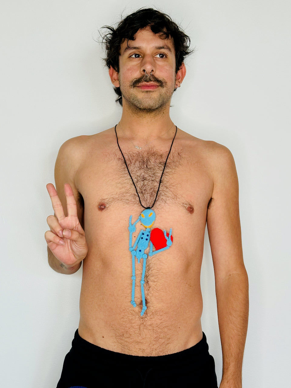 Walter Van Beirendonck Peace Alien Necklace in Blue
