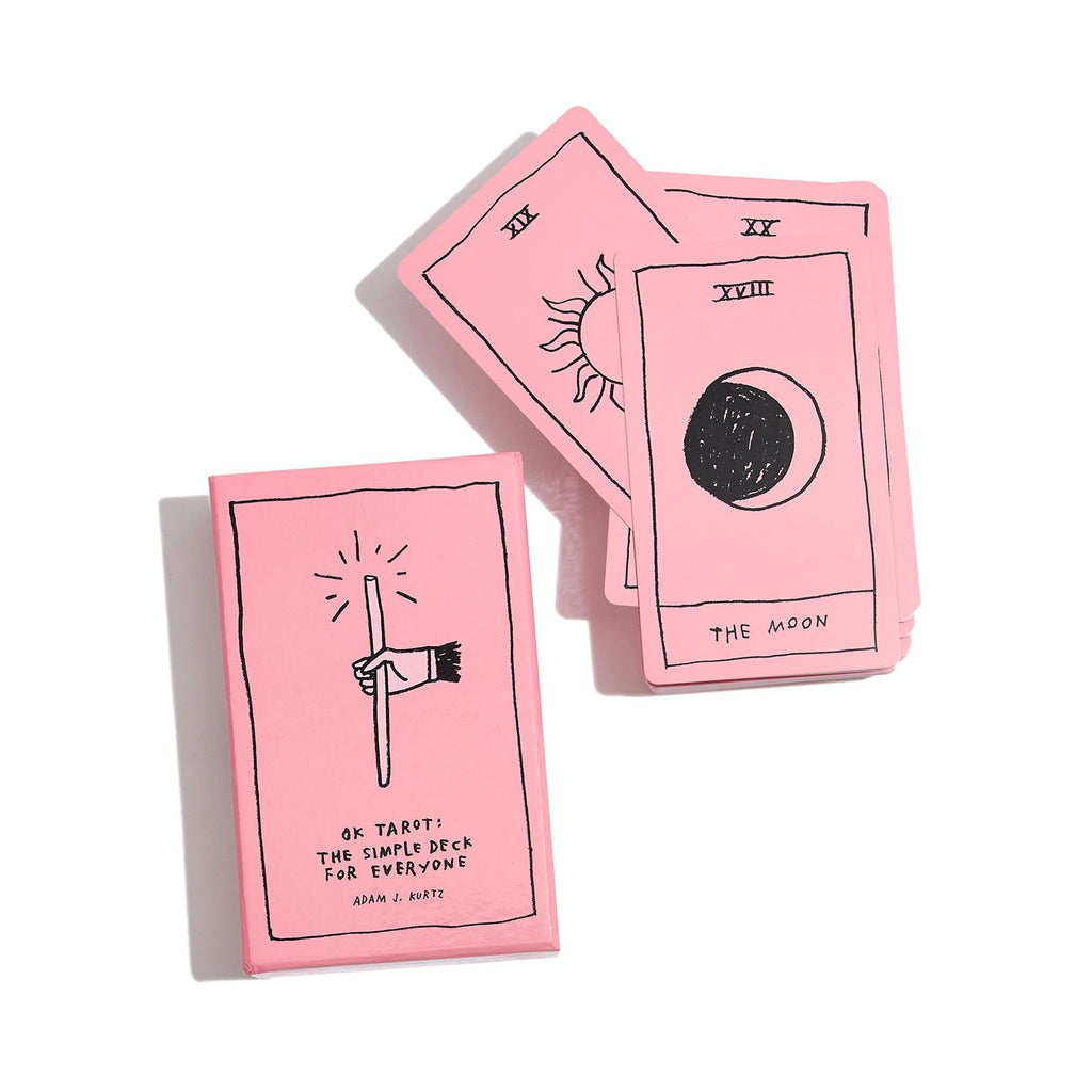 The unique OK Tarot deck features all 78 major and minor arcana as understood and interpreted by artist Adam J. Kurtz (that's me). While many decks, such as the classic Rider-Waite, incorporate a ton of rich and detailed illustration, this one… does not. It's not the best, but it's pretty OK.