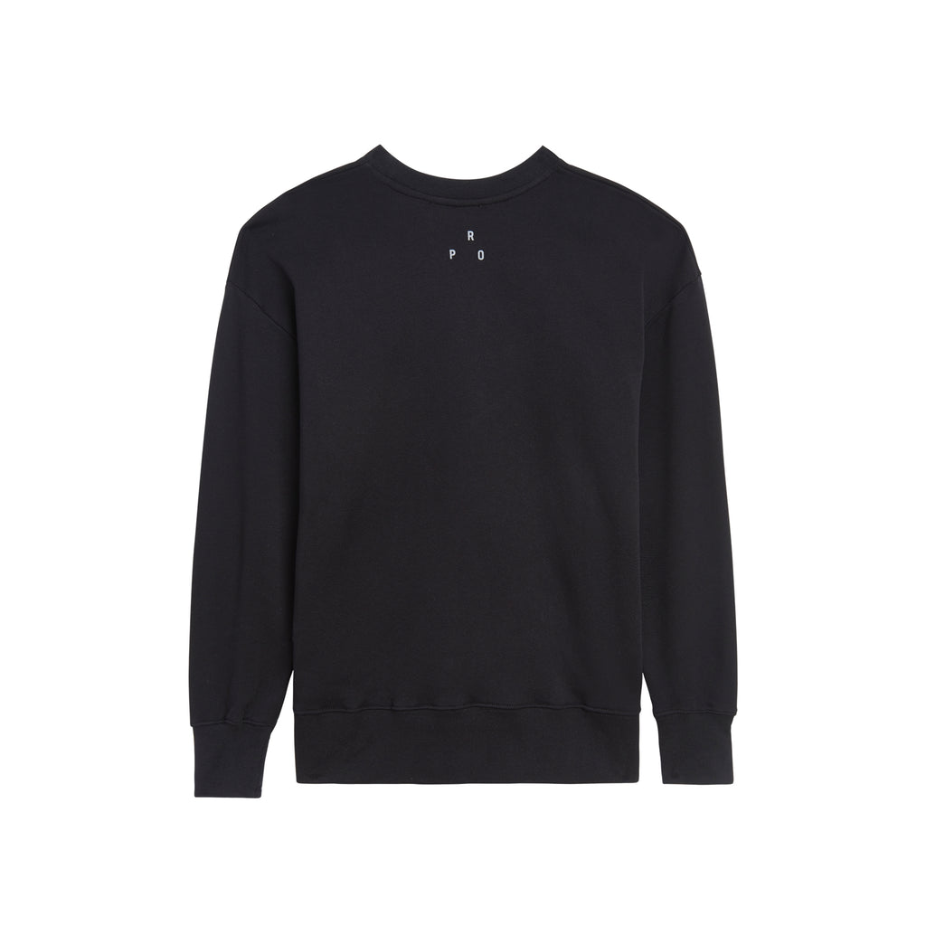 This medium weight fleece crewneck features Basquiat’s Pez Dispenser across the front—with the dinosaur’s tail extending to the back side of the crewneck. The bottom left of the crewneck features a sewn-in woven tag printed with Basquiat’s handwritten text from his famed notebook pages.