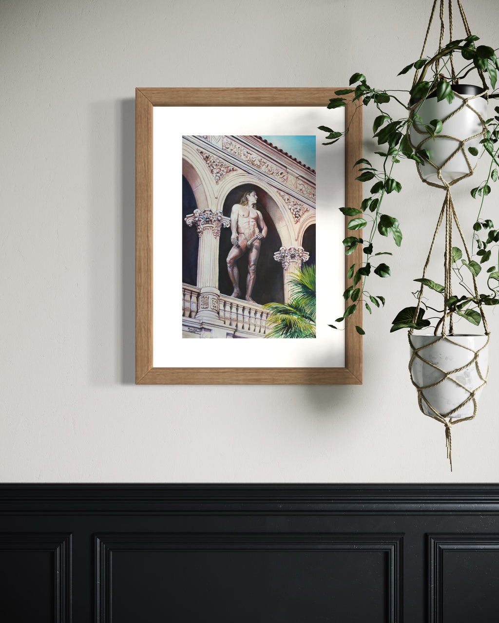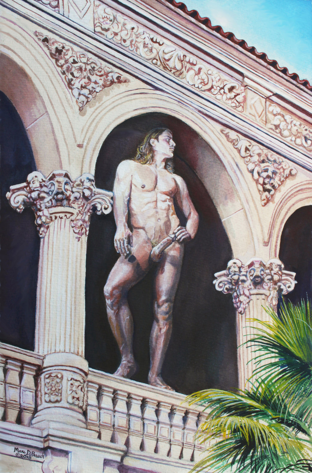 Marc DeBauch has been creating homoerotic fantasy and fetish art for over 40 years, using graphite or gouache on paper as well as oils on canvas. At the age of 23, he joined the sex cult of Bhagwan Shree Rajneesh, changed his name to Satyarthi, wore only red clothing, sold all of his worldly possessions, (except his paint brushes), and moved to India. When he returned to the USA in 1980, Marc began to paint turbulent landscapes and fantasy art, including homoerotic subjects. In 1995 Marc won first place in the Tom of Finland Foundation’s Emerging Erotic Artists Contest. Since then, his art has been exhibited internationally in galleries, museums, The Dirty Show in Detroit, Seattle Erotic Art Festival, The Tom of Finland Erotic Art Fairs and gay pride festivals. His paintings have been published in erotic art books as well as adult magazines. Marc teaches a monthly queer figure drawing class. Marc currently lives in Minneapolis with Eduardo, his husband of 34 years and their boxer dog Nitro. Artists Statement: The paintings I create reflect freedom of the human spirit. Men and beasts unencumbered by the rules of nature and laws of man. Men ascend to love and show affection without fear of repercussions. The goal of my art is to break boundaries so others can discover self-acceptance, feel empowered, and express themselves outwardly in society as well as in intimate settings.