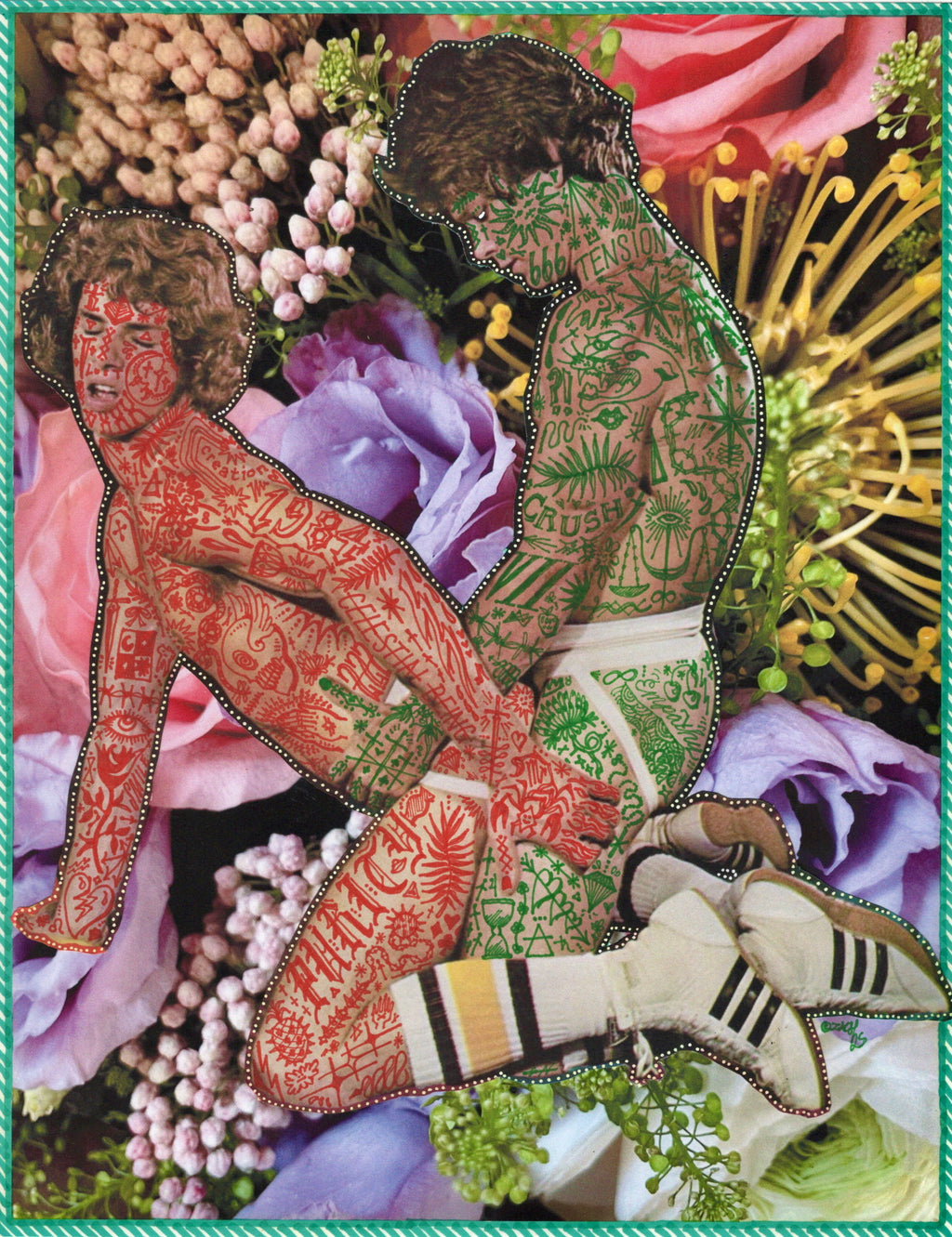 Zach Grear (b. 1984, San Francisco, CA, USA) is a writer and self-taught artist based in Brooklyn. His work focuses on gay erotic imagery inspired by the gay porn he shoplifted as a teen. Hand drawing heavy tattoo line work onto the featured bodies, he works to exalt these formerly hidden images into a deified realm. He attended San Francisco State University and graduated with a BA in Creative Writing. In 2010 he moved to New York City and in 2018 quit his full-time job to pursue his art practice. Since then, his art has been featured in New York Pride Guide magazine, the Oslo Erotic Film & Art Festival, The AIDS Memorial T-Shirt, and LaMama Galleria among others. Utilizing this creative momentum, he is returning to writing. His short nonfiction has been shown in TRUANT zine and most recently the introduction to Male Burlesk-Times Square 1980-81: Photographs by Vivienne Maricevic. Zach is currently working on his first book.