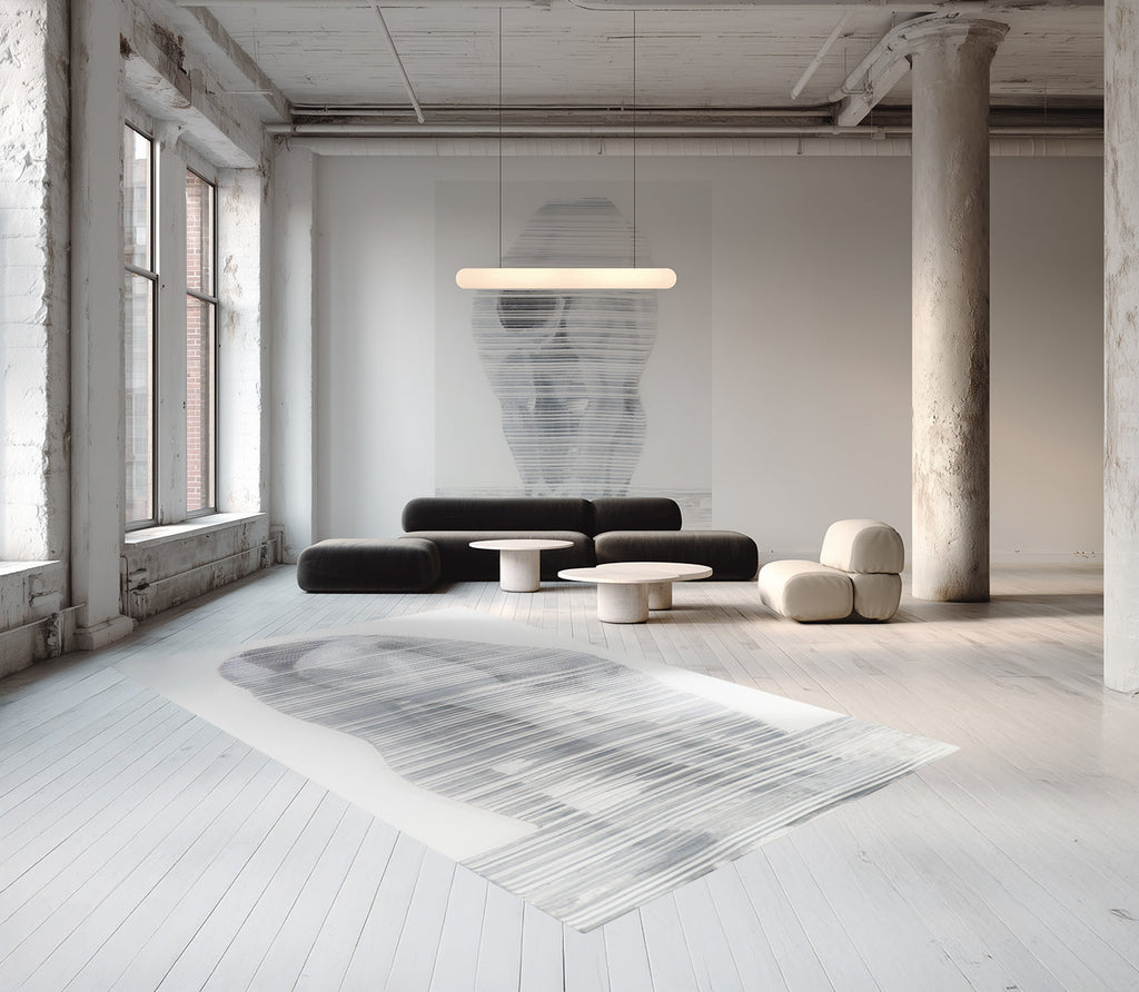 Yosef’s work explores dualism and in-between states: authentic and synthetic, exposure and concealment, intimacy and distance. By shifting fine-art language into textile form, the series questions how medium shapes meaning and how the body meets the image. Each rug functions as a physically encountered painting, holding the viewer within the tension of presence, desire, and material.
