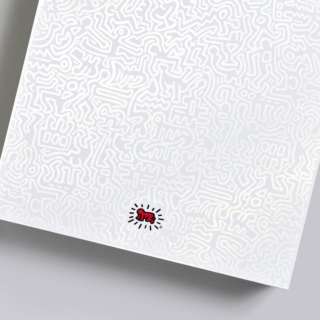 Bridging the gap between the art world and the street, Keith Haring rose to prominence in the early 1980s with his graffiti drawings made in the subways and on the sidewalks of New York City. Combining the appeal of cartoons with the raw energy of Art Brut artists like Jean DuBuffet, Haring developed a distinct pop-graffiti aesthetic centered on fluid, bold outlines against a dense, rhythmic overspread of imagery like that of babies, barking dogs, flying saucers, hearts, and Mickey Mouse. In his subway drawings and murals, Haring explored themes of exploitation, subjugation, drug abuse, and rising fears of nuclear holocaust, which became increasingly apocalyptic after his AIDS diagnosis. Alongside Jean-Michel Basquiat, Kenny Scharf, and Jenny Holzer, Haring is regarded as a leading figure in New York East Village Art scene in the 1970s and '80s.