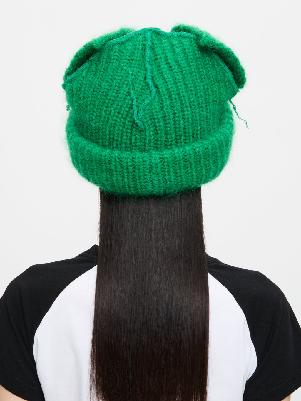 LOVERBOY BY CHARLES JEFFREY MOHAIR CHUNKY EARS BEANIE in GREEN