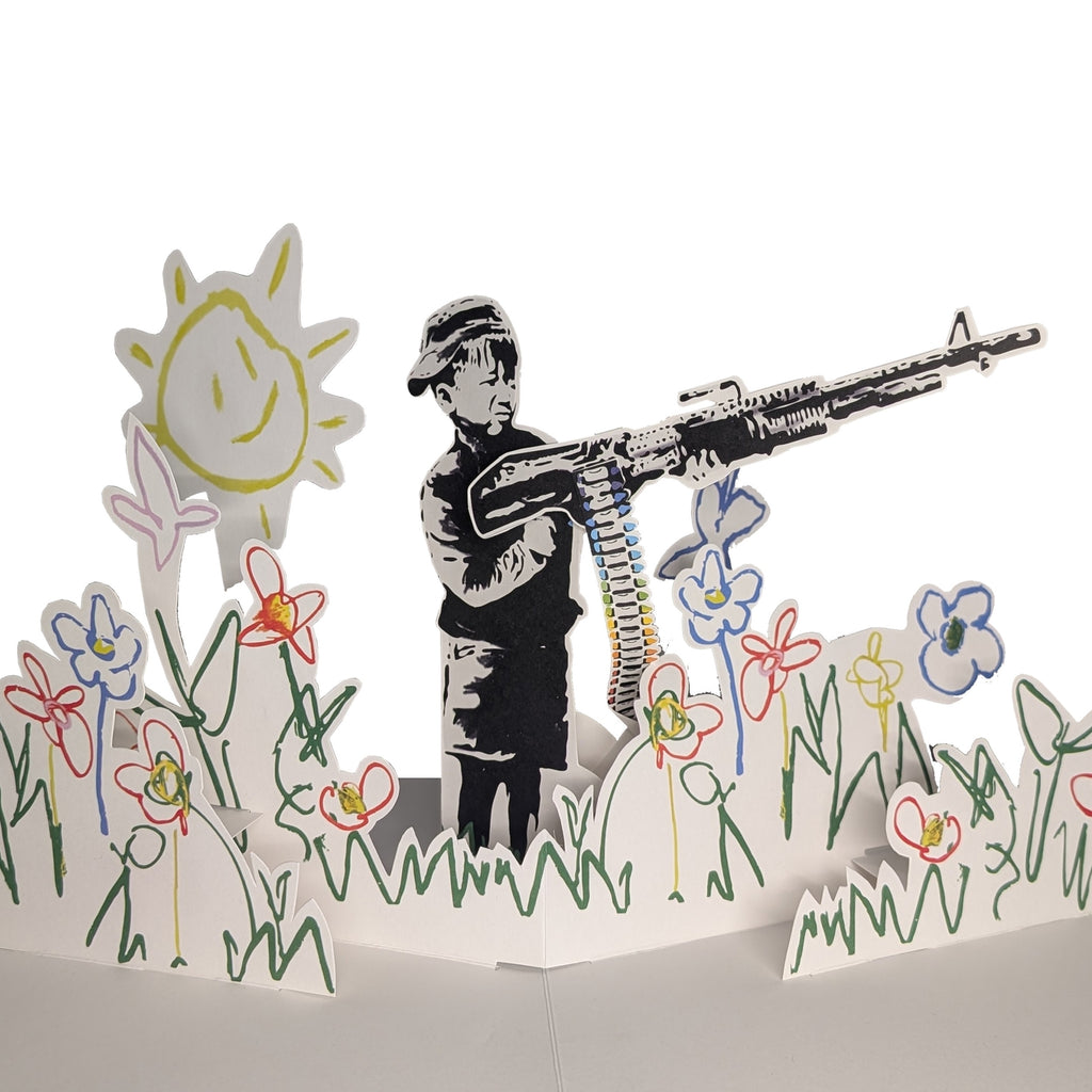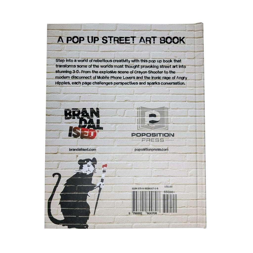 Step into a world of rebellious creativity with this pop up book that transforms some of the world’s most thought provoking street art into stunning 3-D. From the explosive scene of Crayon Shooter to the modern disconnect of Mobile Phone Lovers and the ironic rage of Angry Hippies, each page challenges perspectives and sparks conversation. The following works have been re-created for this book: Angry Hippies, Mobile Phone Lovers, Mean Birds, Rats, Whatever, Crayon Shooter and Balloon Girl.