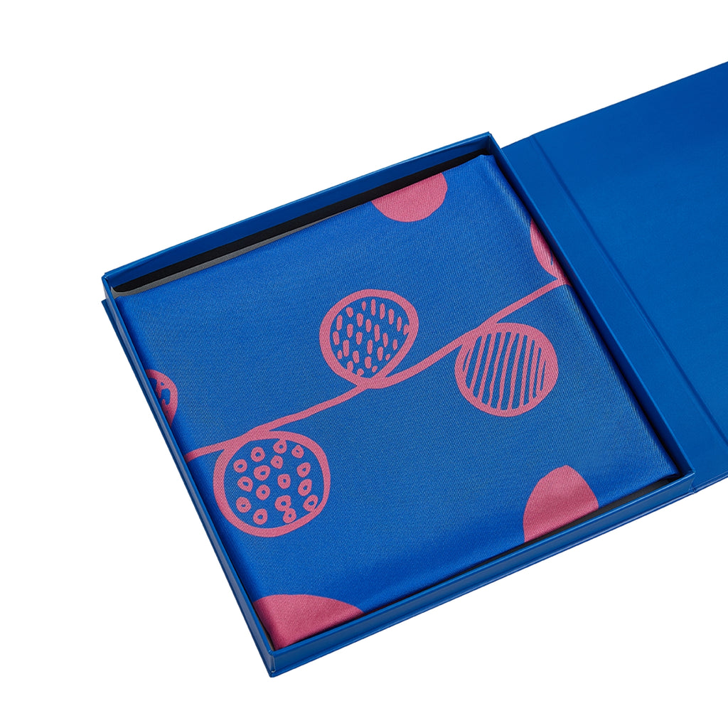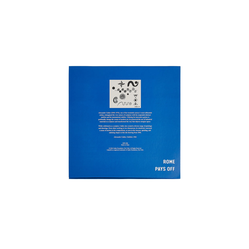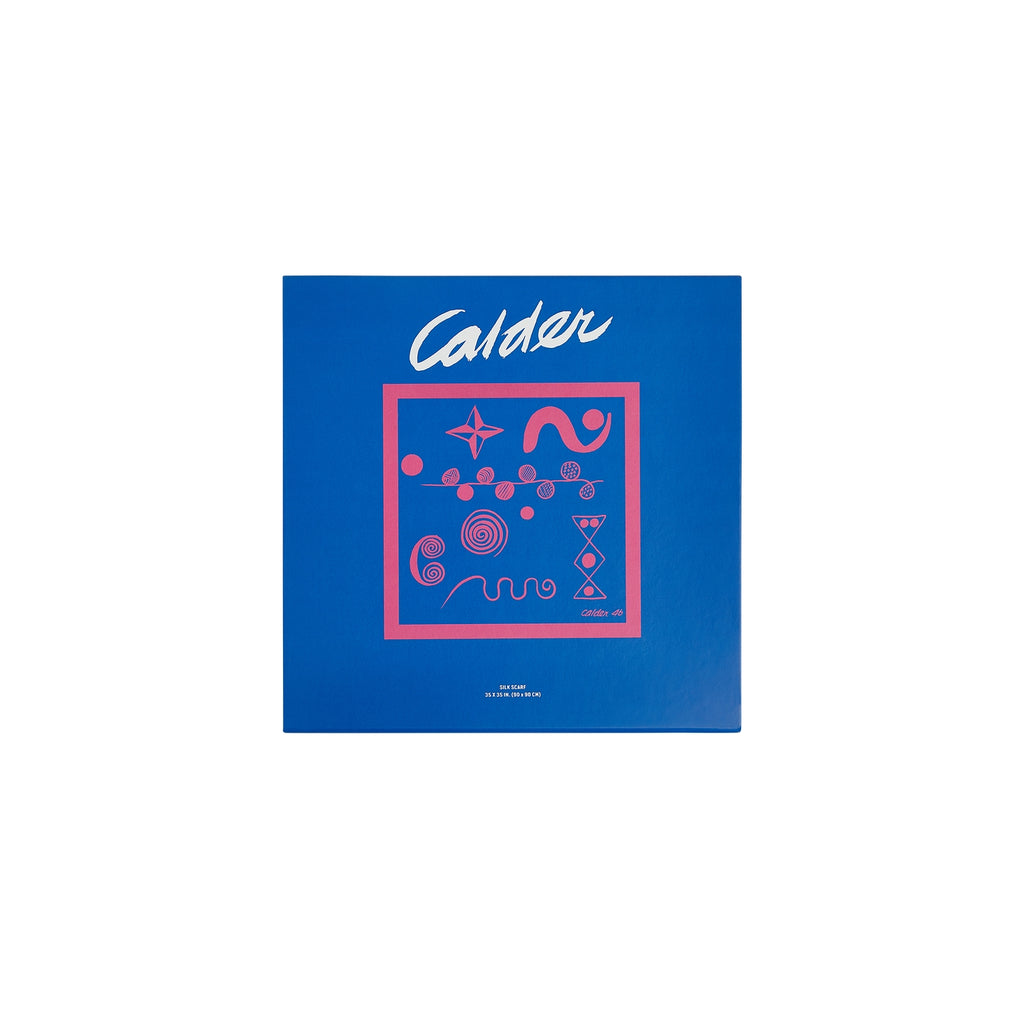 This XL 100% silk scarf features Calder's “Untitled (1946)", presented in a gift box with magnetic closure and artist details on back of the box.