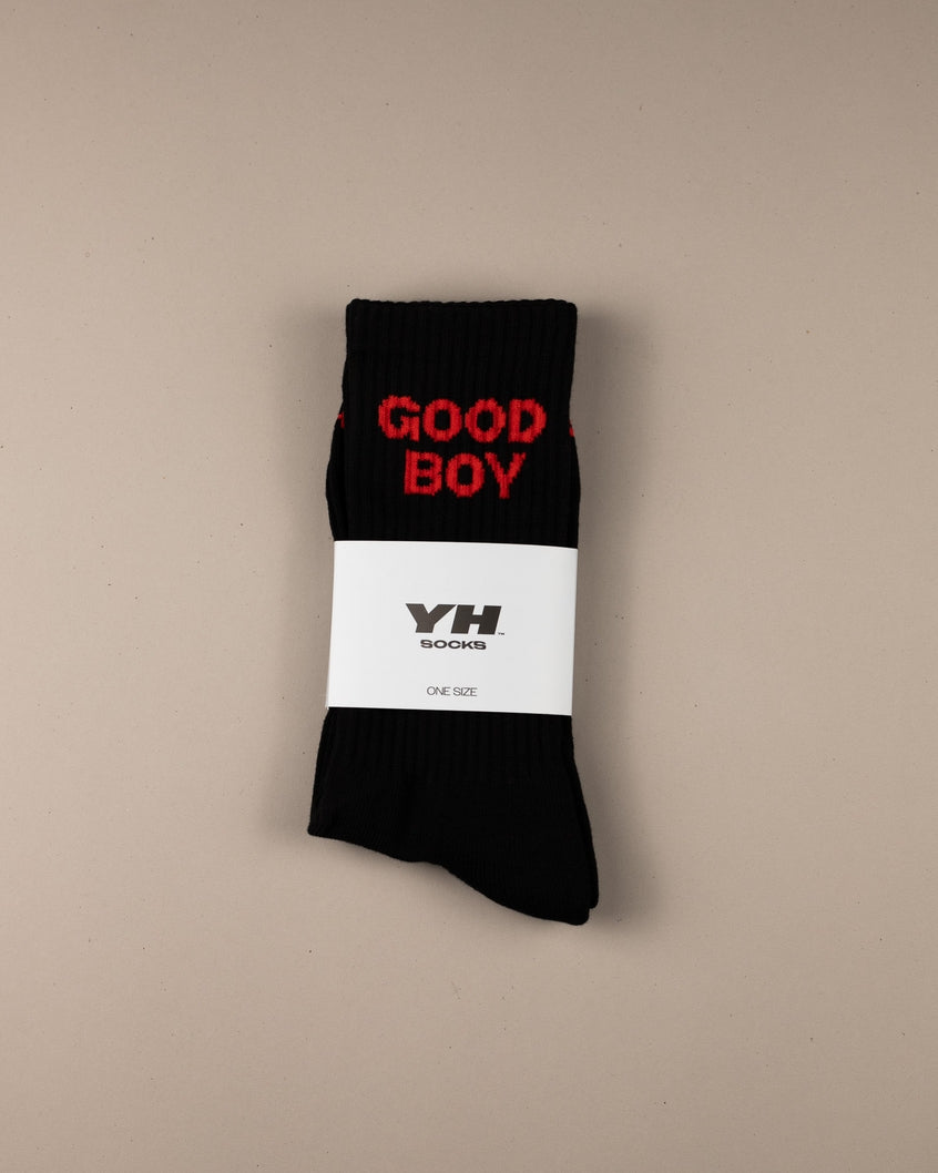 The Good Boy Socks are soft, tight, and dangerously obedient. With Good Boy down the sides, Yes Homo across the toes, and Yes and Homo on the soles, they’re made for praise lovers, flirty behavior, and being told you’re doing such a good job.