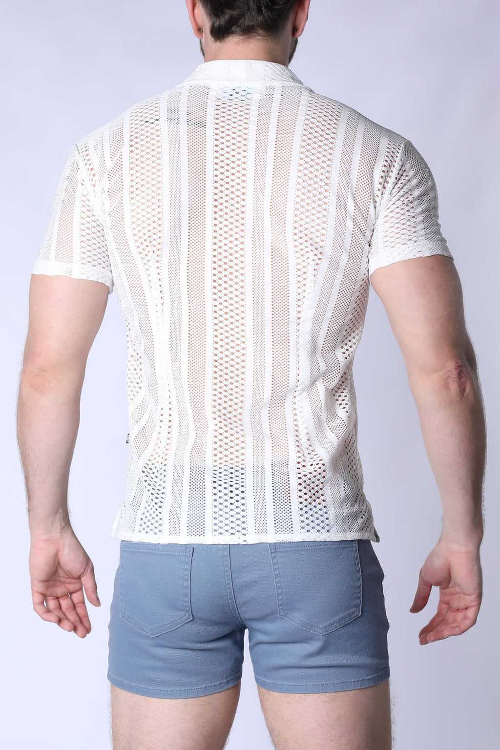 TIMOTEO Sicily Crochet Mesh Shirt - White
