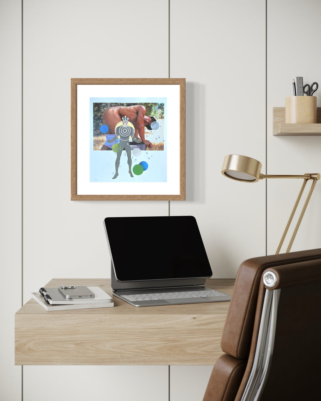 Beginning his artistic endeavors with writing, the subjects in his work prompted an interest in illustration - eventually leading to a broader focus on visual art. Drawing inspiration from heraldry, myth and geography, the near-symmetric figures suggest dignity and sanctitude. The same figures are ghosts against the backdrop of an old building, a field, a face. Through collage, a strong focus on LGBTQ+ themes is broached. Subjects are obscured and marred to bring out unseen dignity and insecurity, emotion and perception, desire and despair. New representations of self are revealed through modified composition and abstraction.