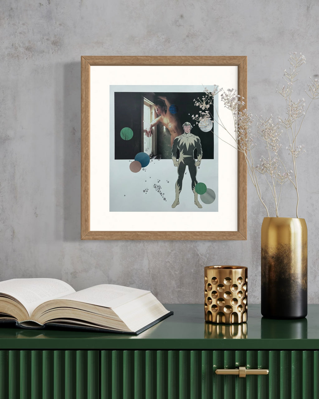 Beginning his artistic endeavors with writing, the subjects in his work prompted an interest in illustration - eventually leading to a broader focus on visual art. Drawing inspiration from heraldry, myth and geography, the near-symmetric figures suggest dignity and sanctitude. The same figures are ghosts against the backdrop of an old building, a field, a face. Through collage, a strong focus on LGBTQ+ themes is broached. Subjects are obscured and marred to bring out unseen dignity and insecurity, emotion and perception, desire and despair. New representations of self are revealed through modified composition and abstraction.