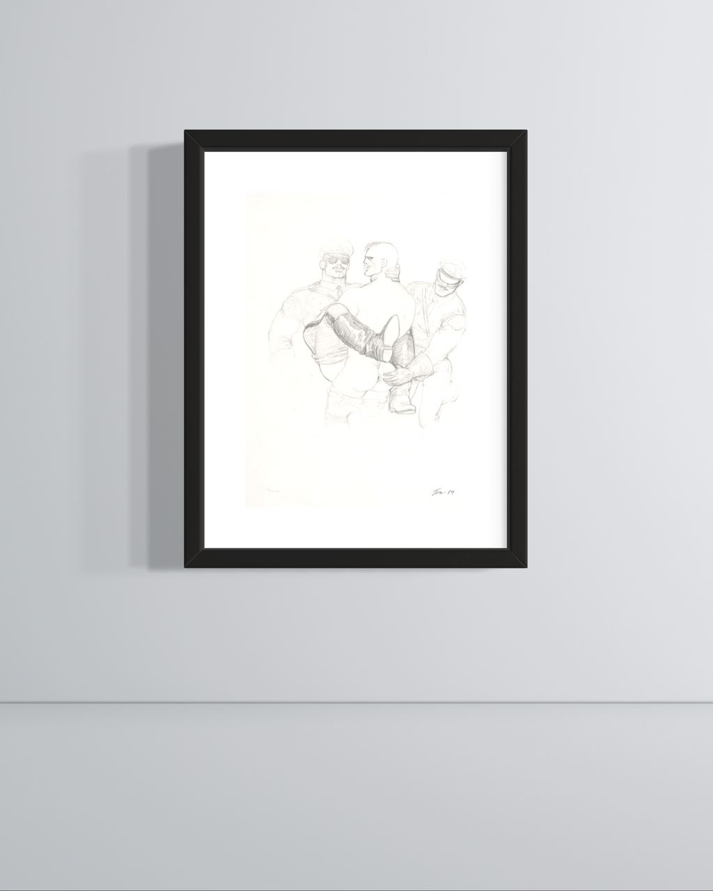 The legacy of Tom of Finland (Touko Laaksonen) continues to resonate powerfully across contemporary art, fashion, and visual culture. Widely recognized for his unapologetic and meticulously rendered depictions of hypermasculine gay figures, Tom of Finland not only redefined queer representation in the 20th century but also laid a bold visual foundation that continues to inspire generations of artists. In this spirit, the inclusion of works by artists such as Etienne and Bill Ward in the CULTUREEDIT auction reflects the enduring reach and evolution of Tom’s visual language. French artist Etienne has acknowledged the aesthetic and political impact of Tom’s imagery in shaping his own explorations of identity and desire. Through stylized photography and carefully staged portraiture, Etienne revisits the codes of leather, uniform, and sculptural masculinity, translating Tom’s graphic vocabulary into a contemporary photographic idiom that blends erotic charge with intimacy and self-aware theatricality. British illustrator Bill Ward represents another important strand within this lineage. Emerging from the world of British comics before turning to gay erotic illustration, Ward became known for narrative drawings that combined the muscular dynamism of adventure comics with unapologetically homoerotic themes. His serialized character Drum, published in magazines such as Drummer, helped define a visual language of rugged masculinity deeply connected to leather and biker subcultures. With bold linework and a strong sense of storytelling, Ward’s work expanded the possibilities of queer erotic comics and circulated within the same underground networks that championed Tom of Finland’s imagery. Presented together in this auction, these artists trace a broader continuum of queer visual culture—from Tom of Finland’s foundational drawings to later interpretations that translate his spirit across media, generations, and cultural contexts. Additional participating artists include Olaf, Valentine, Axel, Alan, Kent and Brick Bradford, whose works further expand this dialogue, highlighting the breadth, humor, and enduring vitality of queer erotic art across multiple voices and perspectives.
