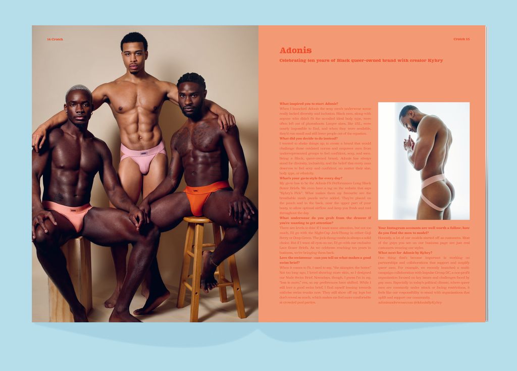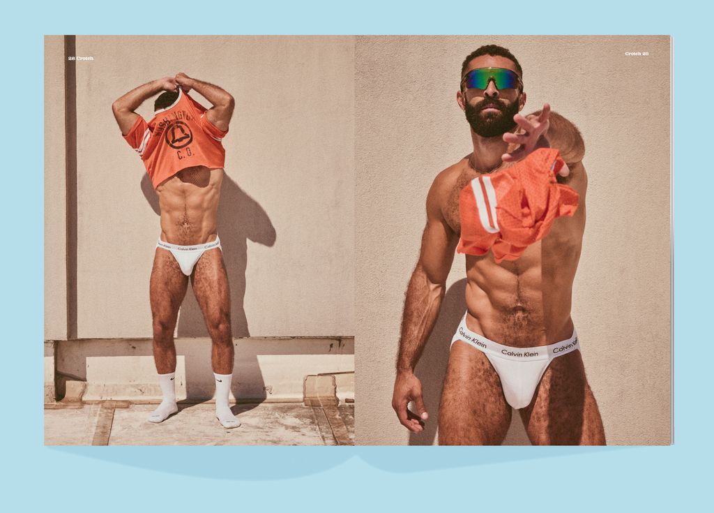 Underwear and swimwear, on beautiful men, featuring their bodies and sexual liberation.
